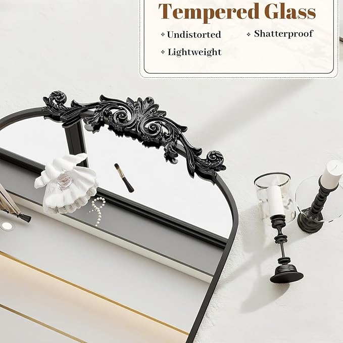 - Elegant Arched Aluminum Frame Design: This oversized floor mirror features a vintage-inspired design with an arched top adorned with ornate one-piece carvings (The carving and mirror are integrated into one design, not separate), adding timeless charm to any space. The lightweight yet sturdy aluminum alloy frame comes in antique bronze and black, seamlessly complementing modern, farmhouse, or classic decor styles.