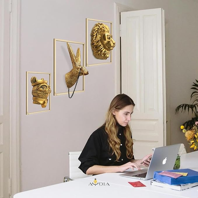- Unique Home Accent: Inspired by nature and crafted in detail, each animal head wall mount comes in a striking gold decor finish with fun glasses and accessories. Whether you need mount wall decor, animal wall decor, or animal art wall decor, this stylish set will instantly elevate your walls.