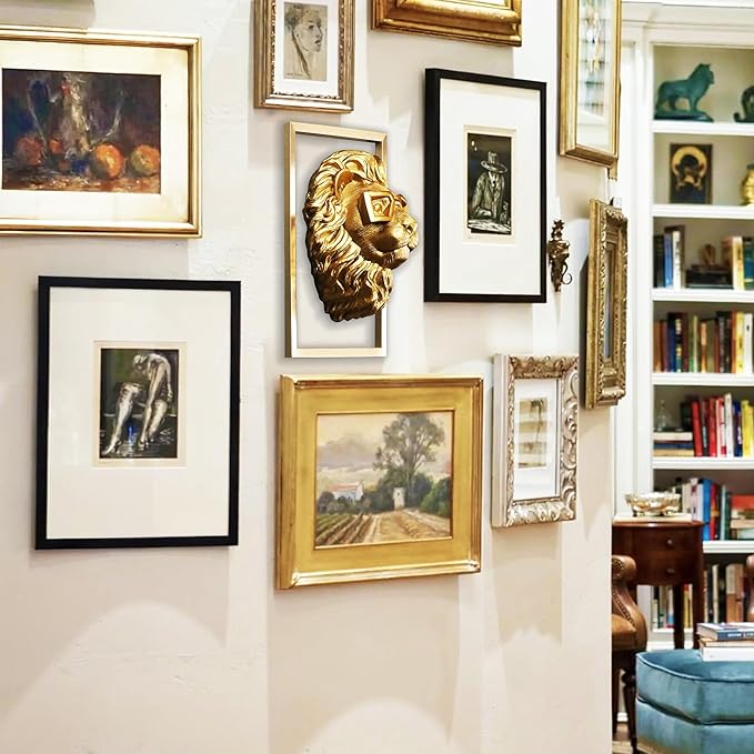 - Lion Wall Decor: Regal and bold, the lion head wall mount is a striking centerpiece of this collection. This golden lion adds power and style to any bedroom wall art setup or large wall decor in your living room.