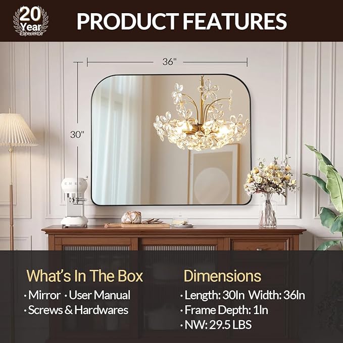 - Crafted With Care & Backed by Trust – Every ANDY STAR mirror passes through 50+ quality steps—from precision cutting to polishing—for a flawless finish. With 20+ years of craftsmanship and 7 years serving U.S. Amazon customers, we guarantee durability and beauty, backed by a full 12-month warranty