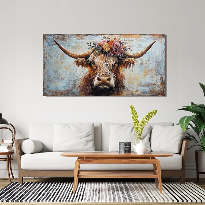 Canvas Wall Art Decor Wall Art Picutures for Living Room Artwork for Wall Decor Highland Cow Wall Art Prints Vintage Wall Art Decorations Art Work for Walls Home Bedroom Office Decor 20" X 40"