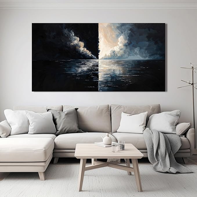 Large Abstract Wall Art Decor Wall Art Pictures for Living Room Abstract Canvas Art Wall Decor Modern Black and White Wall Art Prints Large Coastal Wall Art Decorations Bedroom Office Home Decor 24" X 48"