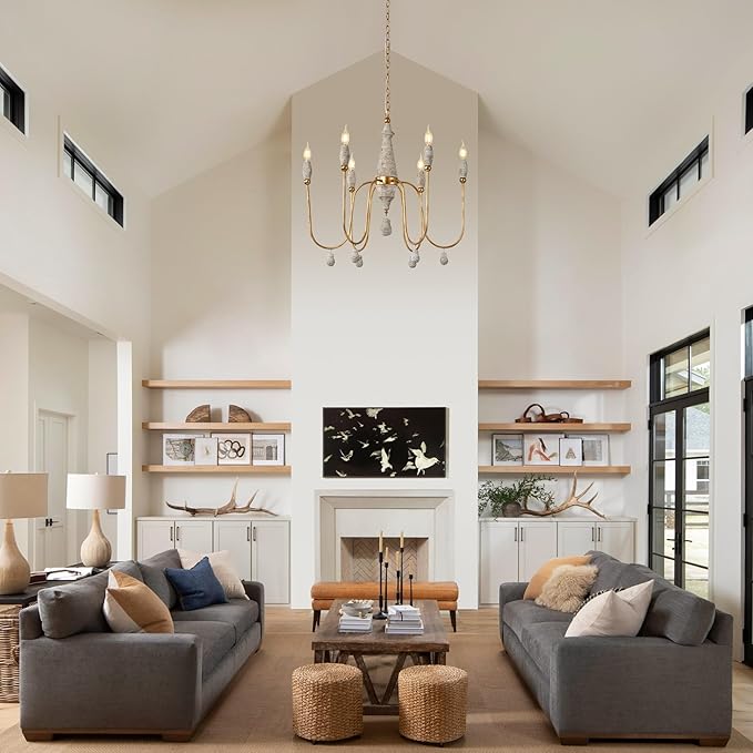 - [Style & Design] - Farmhouse chandelier is meticulously crafted by highly skilled craftsmen. The main structure of the french chandelier adopts a symmetrical tree-shaped branch design, and the main arm adopts a three-dimensional carving process, transforming the functional metal support into a highly sculptural visual carrier. The small wooden ball hanging from the end of the lamp arm not only plays a balancing role, but also acts as the finishing touch, making the whole chandelier more lively and interesting.