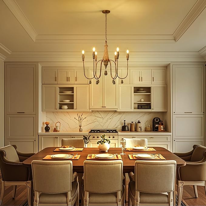 - [Bulb Requirement] - This farmhouse dining room chandelier features 6*E12 bases that are compatible with various bulb types, such as incandescent, LED, CFL, and halogen bulbs (Bulbs NOT Included). When installed with dimmable bulbs and a compatible dimmer switch (Switch NOT Included), the fixture is dimmable.