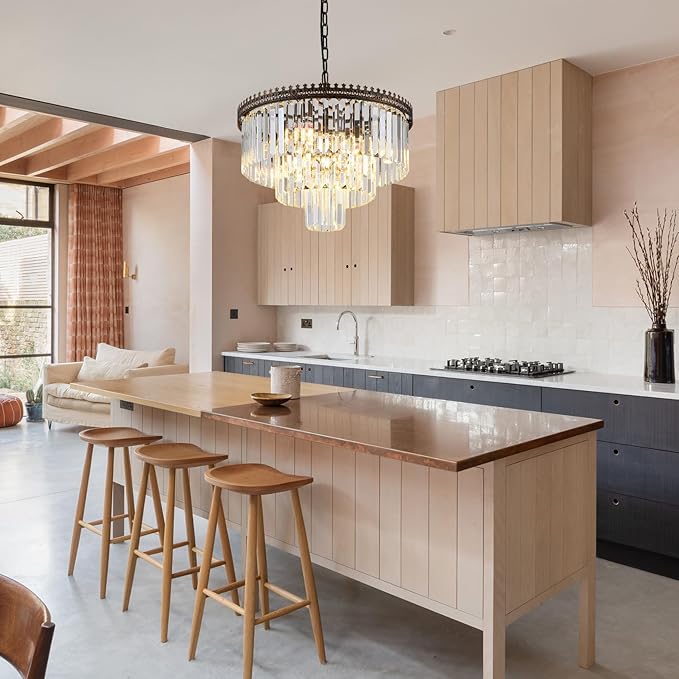 6-Light Crystal Chandelier, 3-Tier Modern Chandelier for Dining Room, Farmhouse Round Crystal Hanging Light Fixture for Foyer Living Room Entryway Bedroom