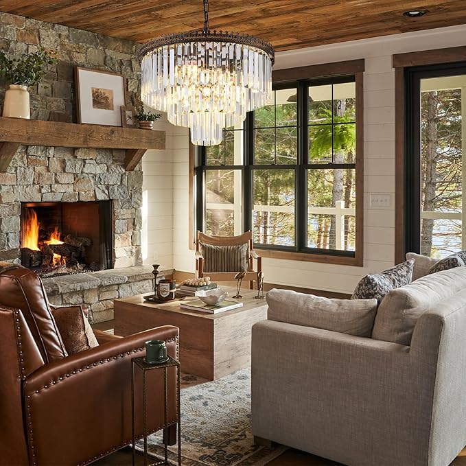 - Modern Crystal Chandelier: Our crystal chandelier combines modern and vintage styles, with bling crystals and vintage antique bronze iron frame, It's the perfect addition to any minimalist house or contemporary-inspired home decor