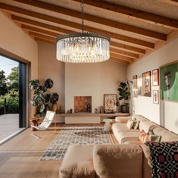 - Modern Crystal Chandelier: Our crystal chandelier combines modern and vintage styles, with bling crystals and vintage antique bronze iron frame, It's the perfect addition to any minimalist house or contemporary-inspired home decor