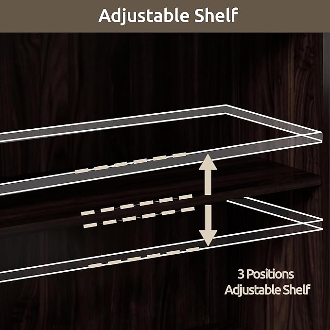 - Versatile Home Design: This attractive and practical bookcase with doors features three open upper shelves with two adjustable boards, making it easy to display decorative items, books, figurines, etc., keeping your favorite things in plain sight. The bottom cabinet with double doors includes one adjustable shelf, allowing you to divide the storage space as needed, hide infrequently used items, prevent dust, and keep your home tidy.