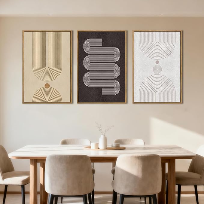 - 【Large Boho Neutral Modern Wall Art】This boho mid century modern wall decor, measuring 24x36 inches. This neutral abstract artwork piece consists of 3 abstract line paintings of different colors, ingeniously integrating the line elements with modern artistic aesthetics. The minimalist lines combined with symmetrical geometric style add an artistic touch to your space, while its retro colors also complement various interior decoration styles.