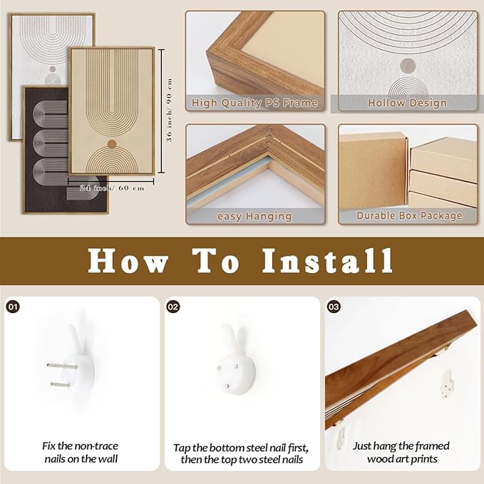 - 【Easy to Hang】Each framed netural abstract wall painting fully assembled and comes with hanging accessories. After receiving the goods, measure the desired position and hang it. It will only take a moment to refresh your space and bring a refined and individual style to it.