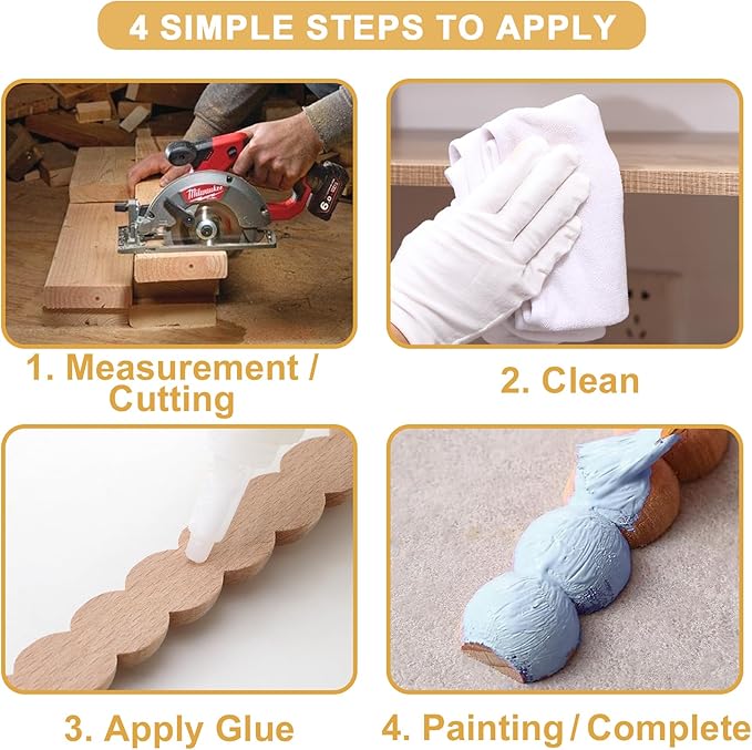 - Easy Installation: Easily cut, sanded, stick, or painted. Suitable for DIY enthusiasts and woodworkers (pre-sanding recommended if surface is rough)
