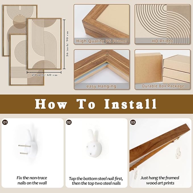 - 【Easy to Hang】Each framed natural abstract wall painting fully assembled and comes with hanging accessories. After receiving the goods, measure the desired position and hang it. It will only take a moment to refresh your space and bring a refined and individual style to it.