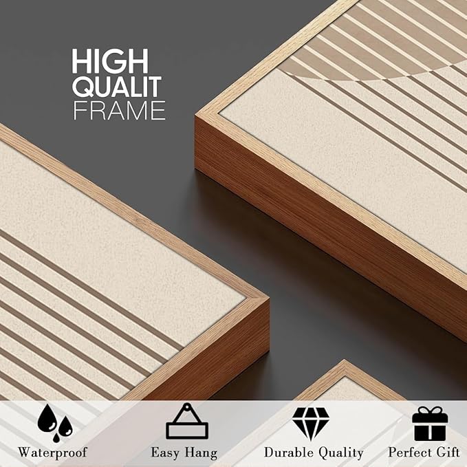 - 【Abstract Geometric Line & Premium Quality Material】This modern minimalist symmetrical line wall decor is made of high quality waterproof canvas material. It uses high definition professional printing technology to present the colors of the paintings clearly and accurately. It is equipped with a PS frame and a sturdy backboard, which not only adds a retro charm to the work but also provides better protection for the painting.