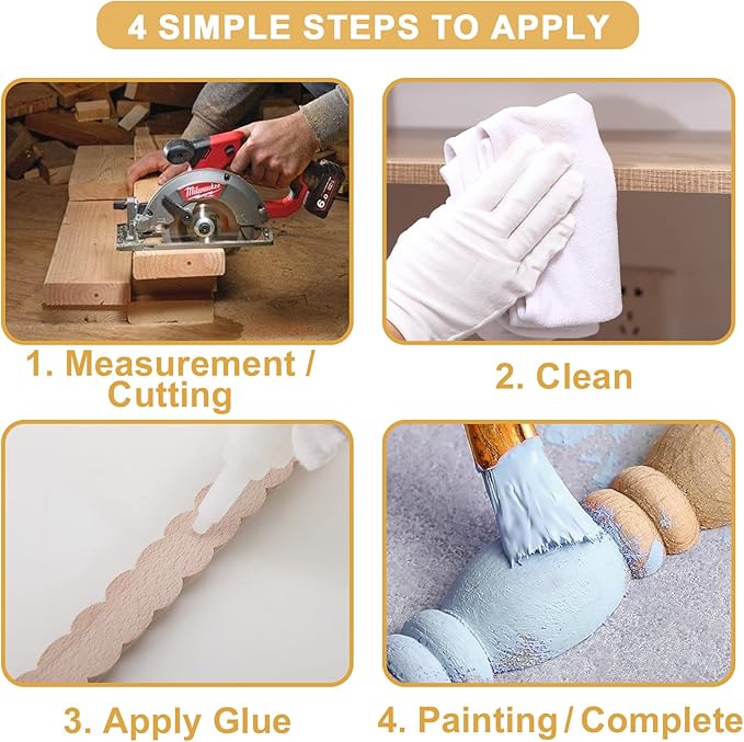 - Easy Installation: Easily cut, sanded, stick, or painted. Suitable for DIY enthusiasts and woodworkers (pre-sanding recommended if surface is rough)