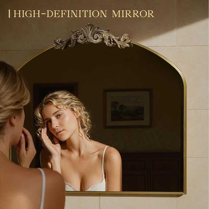 - Ornate Baroque Style: Elevate your space with the exquisite carving top mirror and delicate corner accents of this wall hanging mirror; It's not just a mirror but a piece of art that brings a touch of romance and elegance, ideal for those who love unique and luxurious decor