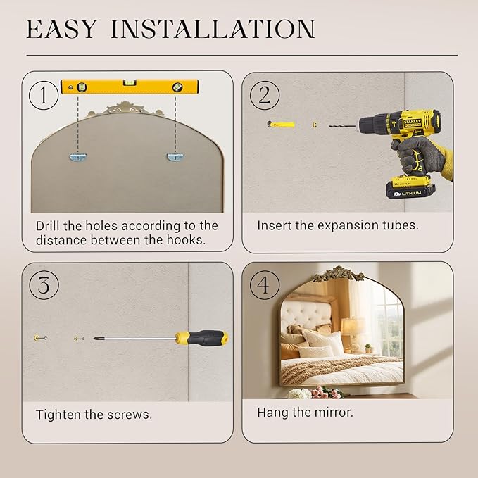 - Easy to Install: Effortlessly hang the Arched Mirror with the 2 hooks and included screws; In just a few easy steps, you can mount it securely on your wall, adding instant charm to any room