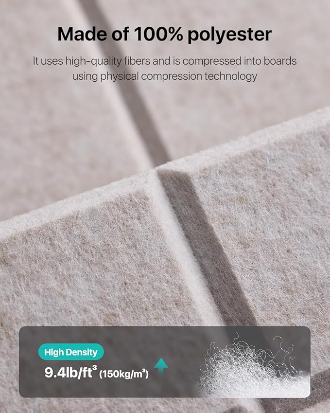- Premium Acoustic Material: Designed as high-density sound proof foam panels, these 100% polyester fiber acoustic panels optimize audio precision and durability.