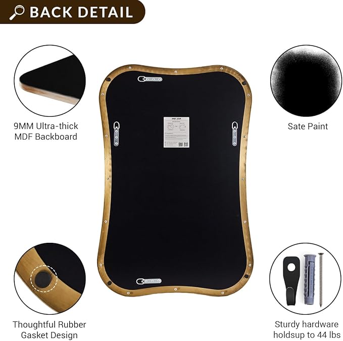 - Premium Quality: Say goodbye to the seam aluminum alloy frame and the annoy of return for the large damaged mirror. This 24x36’’ asymmetrical wall mirror produce with seamless SUS304 stainless steel metal frame to resists corrosion and offers lasting strength, featuring a 4mm HD glass supported by a 9mm MDF backboard, making it a standout decorative mirror for your space.