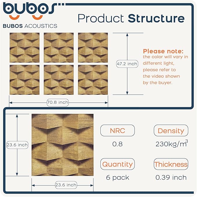 - 【Upgraded Acoustic Features 】BUBOS sound panels help reduce unwanted reflected sound in any room of your home or building, they are lightweight and are easy to mount on the wall, doors and ceiling. Help reduce background noise, echoes, reverberation time(RT), and decrease standing waves (that's what makes noisy studios or offices so bad).