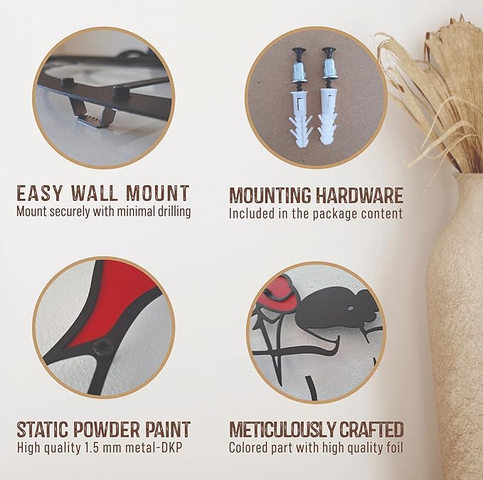 - HIGH QUALITY MATERIAL: Our Metal Wall decors are made of high quality durable metal and painted with extra durable static powder paint. In addition to this quality, our products are also environmentally friendly and do not harm the nature.