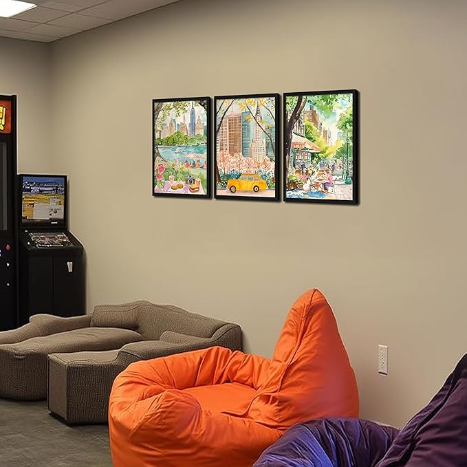 - 【Easy to Hang Design】Each panel includes pre-installed hooks for effortless installation. Display the three pieces together for a panoramic city view or separately to create a cohesive decorative theme across multiple walls.