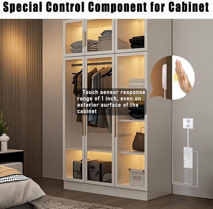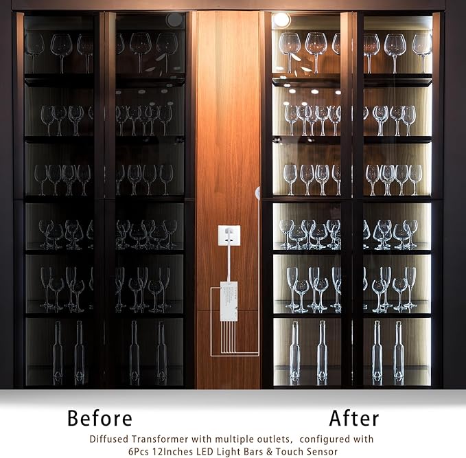 - [Easy Installation] - Multiful outlets in one transformer power 6pcs light bars,neat the set up as much as possible.Easy plug-and-play setup with no hardwiring required. Compare to traditional "touch" sensor,ours allow u to control through 1in-thickness barrier,clik or sweap to switch on/off,and long hold to dim.