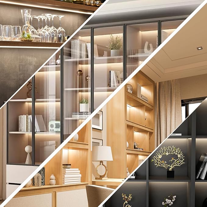 - [V-Shape Light Bars] - Aluminum extrusion profile with right angle for corner, Elegant and low profile for under cabinet corner. Easily create a stylish atmosphere in your kitchen cabinet, showcase, closet, or shelf.