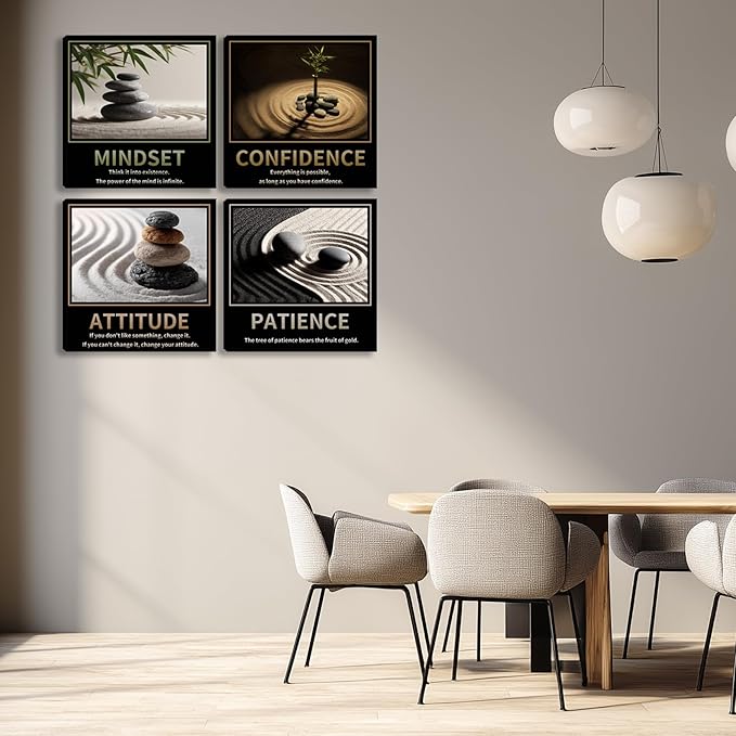 - Motivational Canvas Wall Art Size : 12"x12" each panel,total 4 panels.Gallery wrapped and stretched wood frame