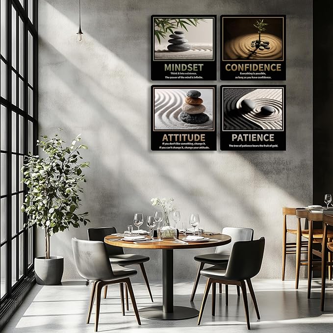 Kuiluuye Motivational Wall Decor Inspirational Zen Canvas Wall Art for Living Room Zen Stone Green Plant Picture for Office Workplace Painting Poster Artwork