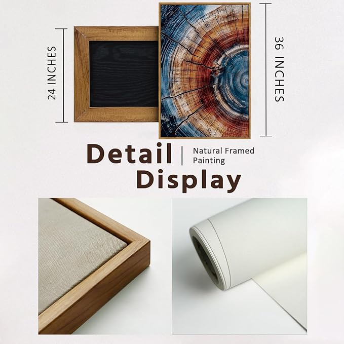 - Quality Framing: Comes with a polystyrene (PS) frame, ensuring durability and a polished finish. The framed design adds a touch of elegance to the abstract wood stump prints.