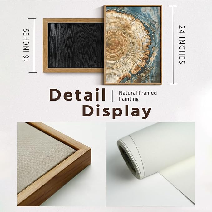 - Quality Framing: Comes with a polystyrene (PS) frame, ensuring durability and a polished finish. The framed design adds a touch of elegance to the abstract wood stump prints.
