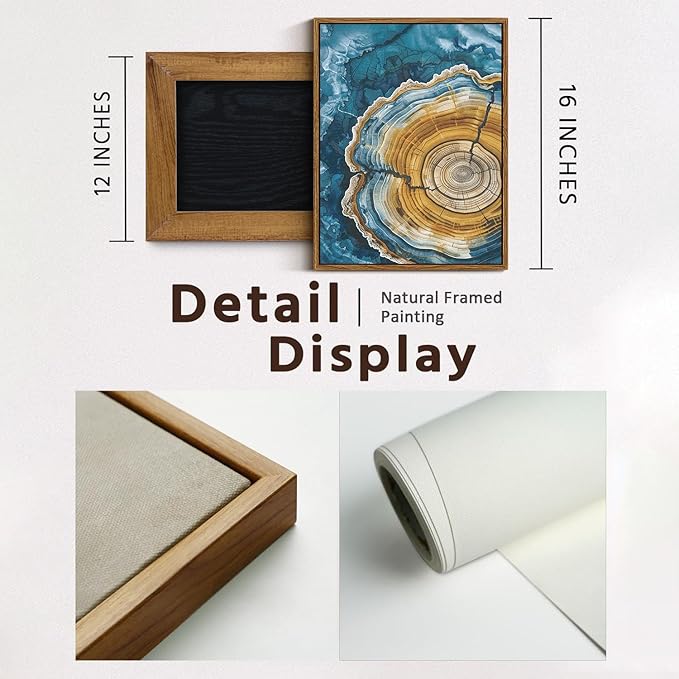- Quality Framing: Comes with a polystyrene (PS) frame, ensuring durability and a polished finish. The framed design adds a touch of elegance to the abstract wood stump prints.