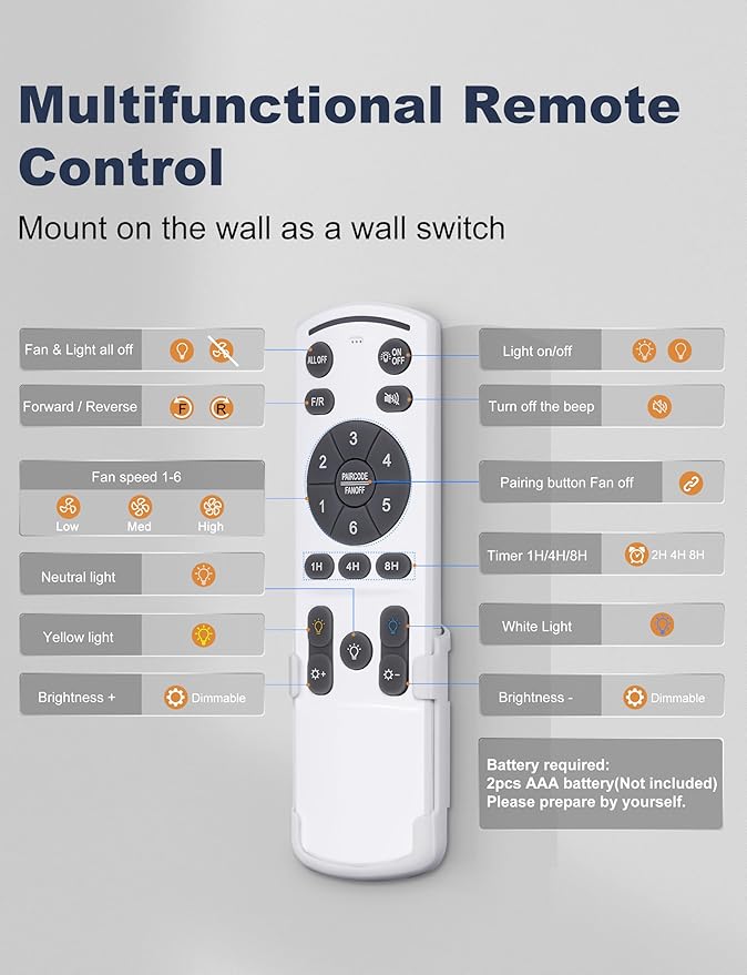 - Customizable Lighting Options: Enjoy versatile lighting with the 3-color and dimmable feature of this 6 ft ceiling fan. You can choose between warm, cool, or neutral lighting to perfectly match your room's ambiance and set the perfect mood. Adjust the brightness to your preference, making it ideal for any setting, from bright reading light to soft, cozy lighting