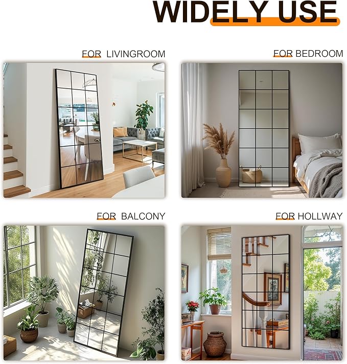 - Versatile for Various Spaces: Whether enhancing your living room, bedroom, hallway, or dining room, this wall mirror complements modern minimalism and industrial chic with its clean, architectural lines. Its use as a large wall mirror for living room or full size mirror for bedroom makes it perfect for any décor.