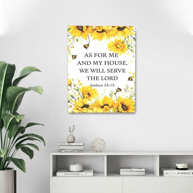 Christian Sunflower Scripture Canvas Wall Art Motivational Flowers Bible Verse Wall Decor Picture Inspirational Bible Quotes Artwork God Psalm Religious Faith Art Painting Print Decoration for Living Room Bedroom Church Framed Gifts 16”X20”