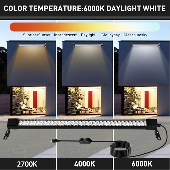 - 150° Adjustable Bracket & Easy Installation : Each LED wall-washing light strip wire is equipped with a 10-foot heavy-duty cable and an American three-pin plug, making it more convenient for you to use. There is also a switch control on the wire. The 150° adjustable bracket is more suitable for DIY installation. Two sets of brackets and screws are installed on both sides. Users can install it via the handle.