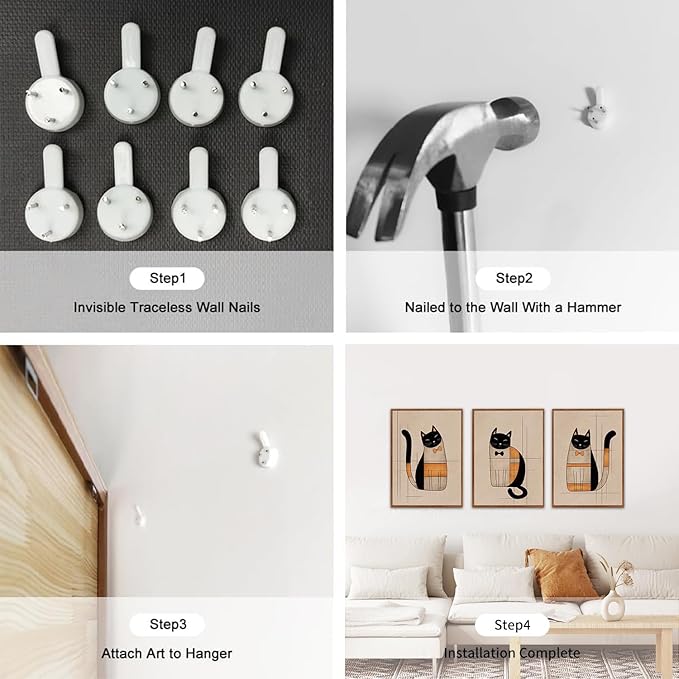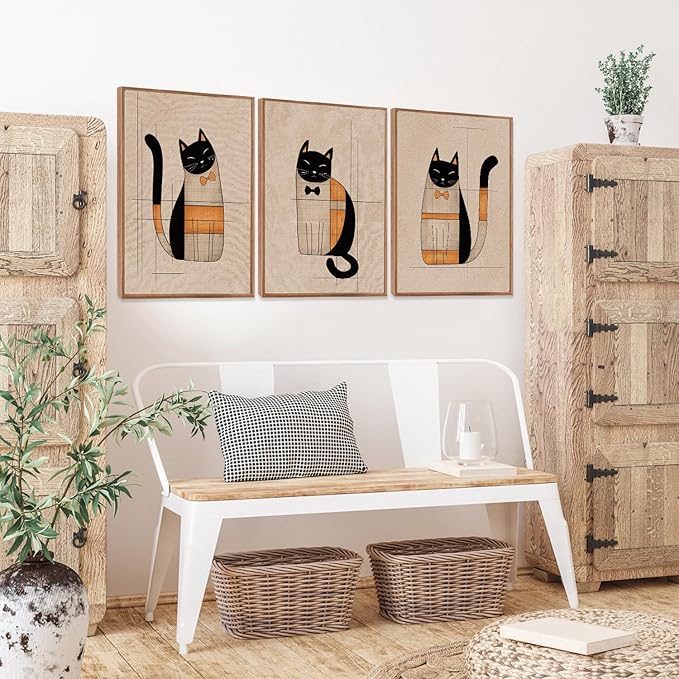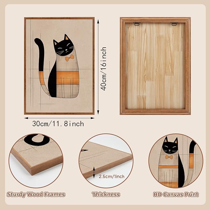 - [High Quality] This boho cats wall decor set is beige color and high quality for framed canvas, which framed with wooden backboard and hanging hardware installed on the back. Comes with non-tracking nails to give as a gift and is easy to hang on your wall