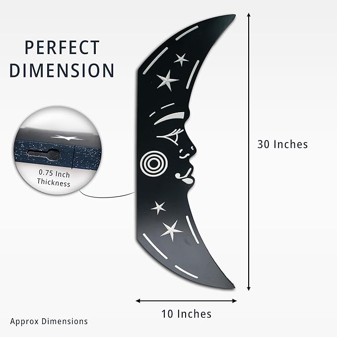 - DESIGN FEATURES: Handcrafted crescent moon wall art with celestial details including stars and spiral patterns, creating an enchanting 3D floating effect