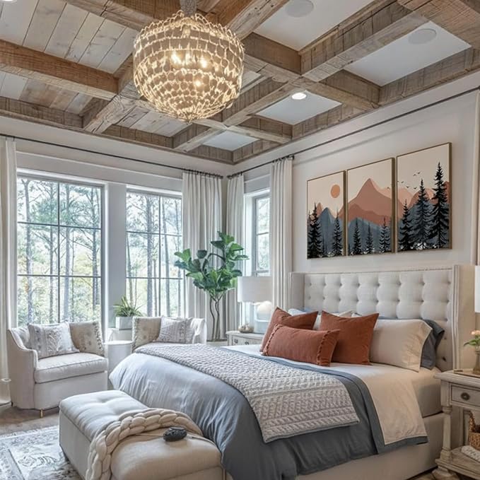 - 【Boho Mountain Style】Captures the essence of bohemian nature with watercolor forest landscapes and sunrise hues, blending mid century modern aesthetics for a serene yet artistic statement