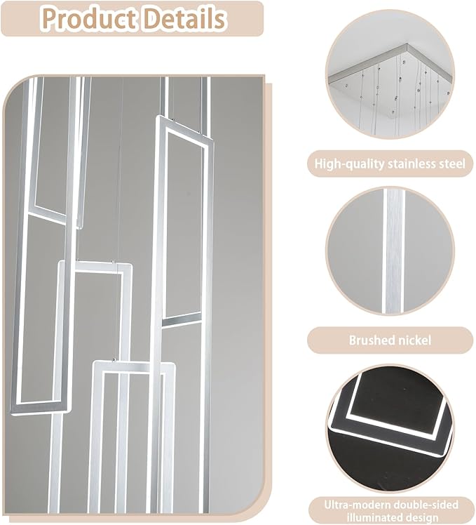 - 【Smart Modern Stairwell Chandelier】:It is equipped with a remote control and APP control for seamless dimming between warm white (2700K) and cold white (6000K),as well as adjustable brightness ranging from 5 to 100 percent.