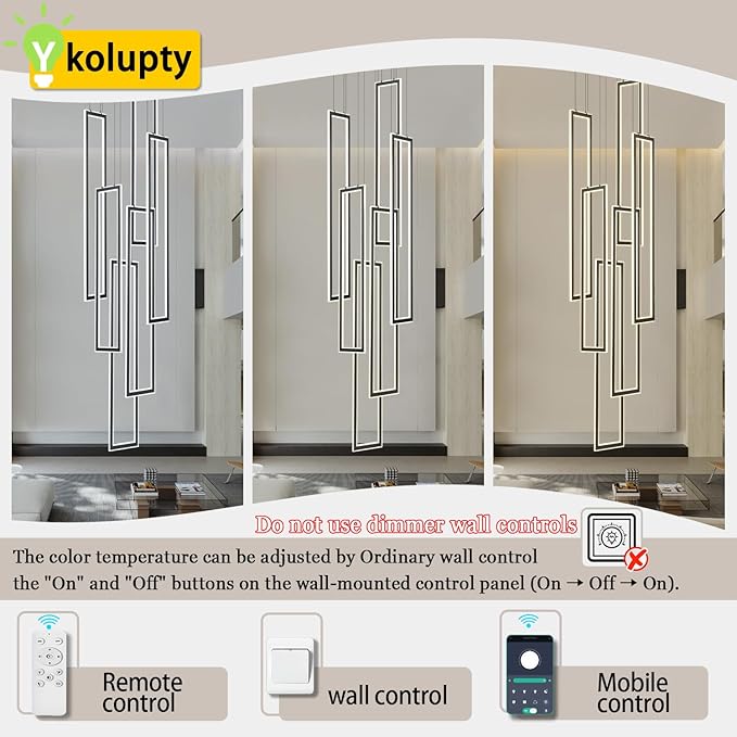 - 【Smart Modern Stairwell Chandelier】:It is equipped with a remote control and APP control for seamless dimming between warm white (2700K) and cold white (6000K),as well as adjustable brightness ranging from 5 to 100 percent.