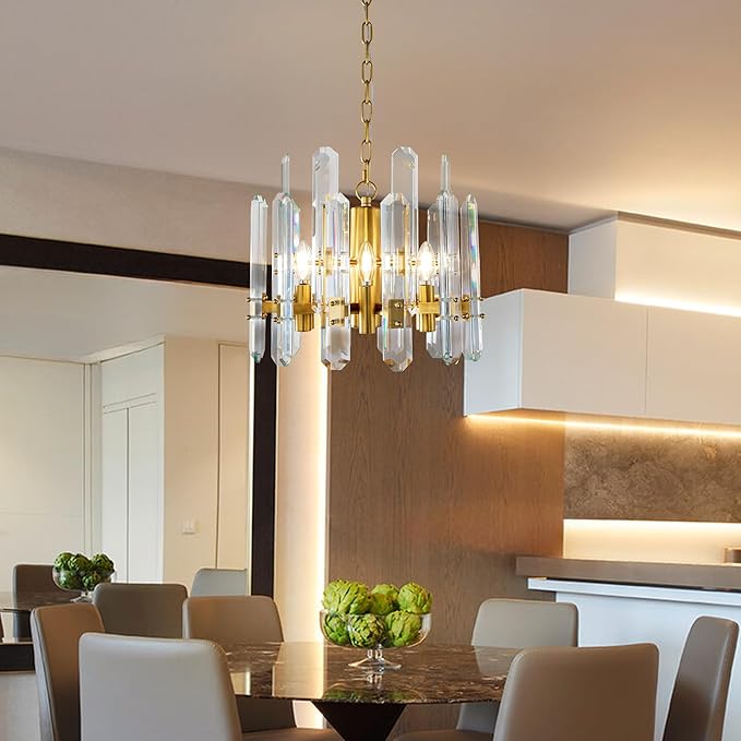 - 【Versatile for Any Room】This round crystal chandelier elevates dining rooms, living rooms, kitchen islands, bedrooms, foyers, bathrooms, or home offices. Its sparkling K9 crystals and gold finish complement modern, farmhouse, and transitional décor. A luxury centerpiece that combines style with functionality.