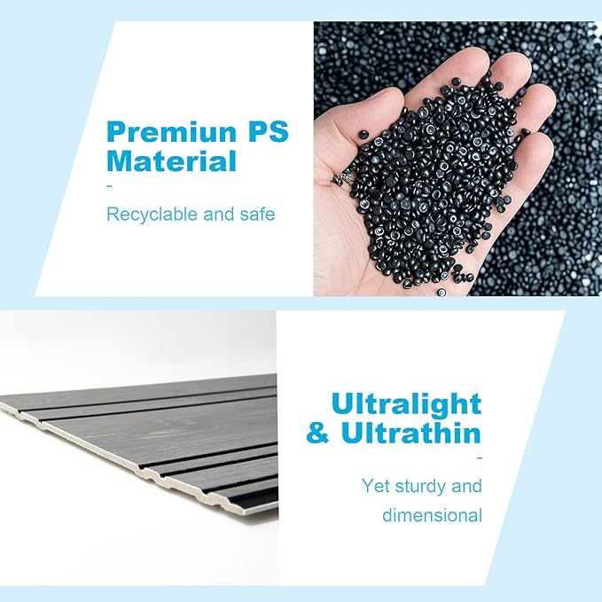 - Durable & Lightweight: Crafted from recycled polystyrene, these wall panels are both sturdy and lightweight. They offer long-lasting performance without warping or cracking, ideal for home upgrades with less environmental impact