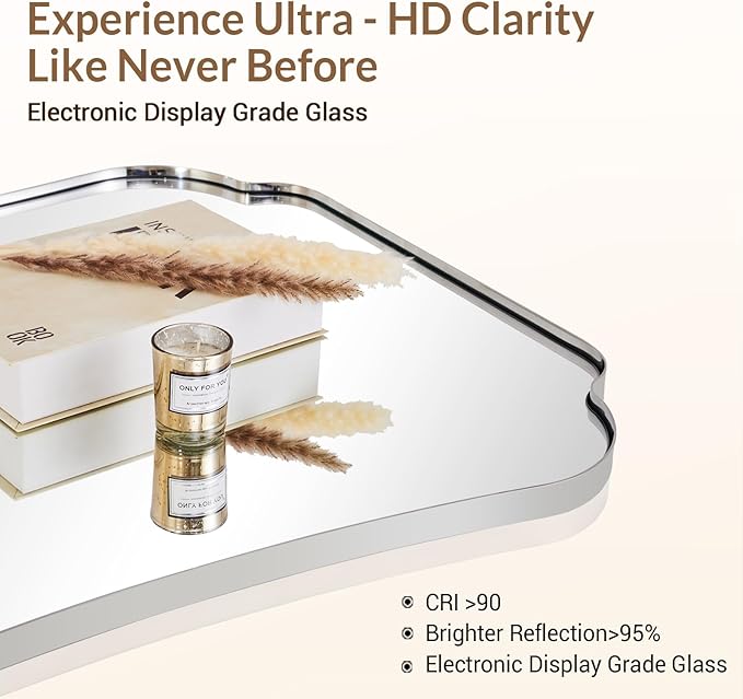 - Artisan-Crafted Scalloped Elegance: Elevate your bathroom vanity with our signature scalloped edge wall mirror, meticulously crafted for a soft, sophisticated aesthetic. The high-gloss chrome finish on a seamless stainless steel frame delivers a bright, reflective look that enhances light and adds a clean, polished touch to modern and minimalist interiors.
