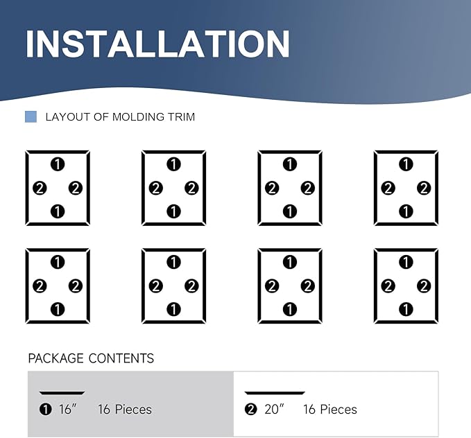 - Complete Kit - You will receive 8 sets of pre-cut peel and stick wall molding, totaling 32 pieces, which will provide an elegant finished look to your doors or walls. If you have any questions about our wall molding, please feel free to contact us. If you are not satisfied with our products, please email us first, allow us to provide professional solutions for you.