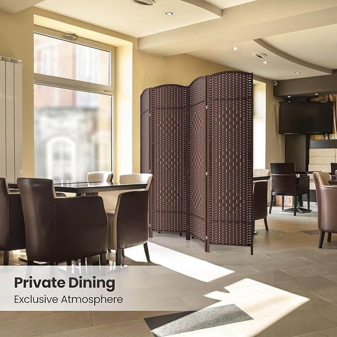 4 Panel Room Divider,6Ft Folding Privacy Screen,Tall - Extra Wide Foldable Panel Partition Wall Divider with Diamond Double-Weaved Hand-Woven Design Room Screen Divider