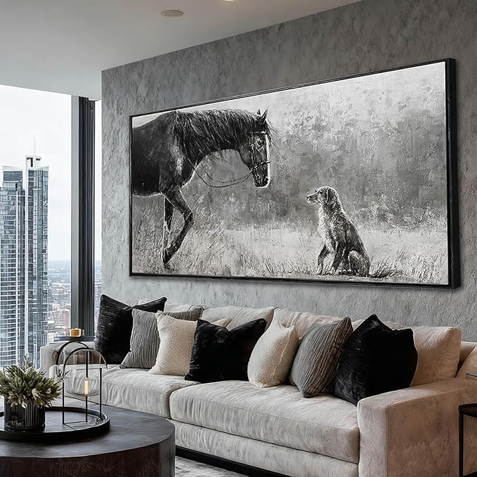 Black Home Wall Decor Horse Canvas Poster Neutral Wall Art 24"x48" Large Pictures for Living Room Kitchen Office Artwork
