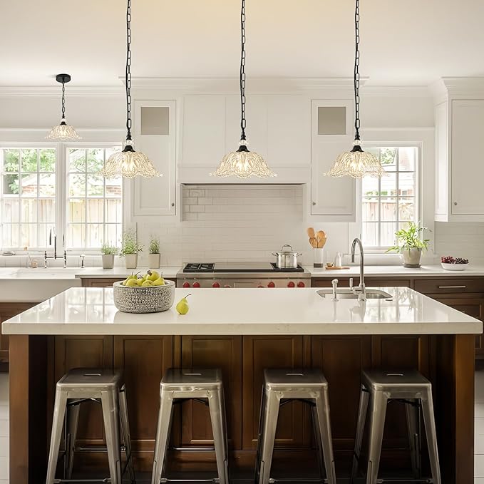 - Bulb Compatibility: The pendant light is compatible with E26 base bulb, including LED, CFL,(supports up to 60W equivalent LED).For optimal visual effect, we recommend using a small bulb that complements the flower-shaped glass lampshade.A properly sized bulb will not protrude from the lampshade.(Note: Bulbs not included)