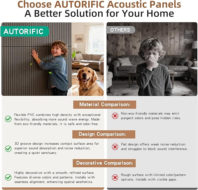 - Stylish Decorative Design: Our acoustic wall panels boast classic wood grain finishes, effortlessly combining sound absorption with elegant wall decor. A range of colors complements any interior style, and the wood wall panels can be easily cut into custom shapes for DIY wall art—adding unique character to your cozy space.