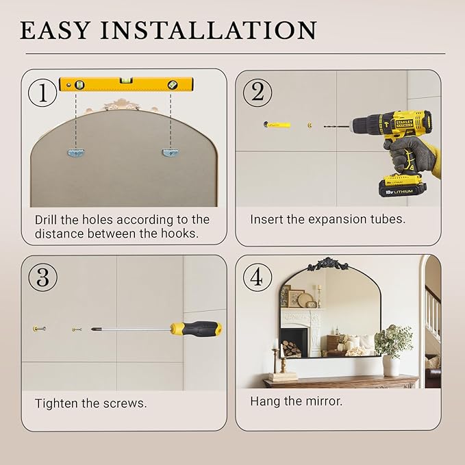 - Easy to Install: Effortlessly hang the Arched Mirror with the 2 hooks and included screws; In just a few easy steps, you can mount it securely on your wall, adding instant charm to any room